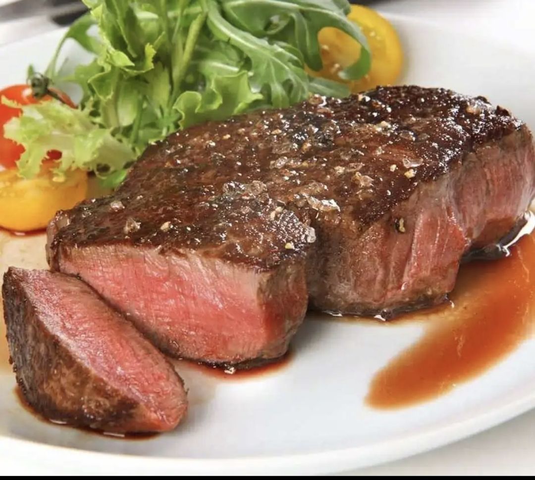 描述:牛排,或称牛扒,是片状的牛肉,是西餐中常见的食物之一。牛排的烹调方法以煎和烤制为主。
