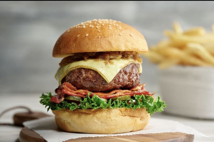 描述:牛肉汉堡是一款快餐食物,制作原料主要有牛肉馅、西红柿、胡萝卜等。是现代西式快餐中的主要食物,食用方便、风味可口、营养全面。