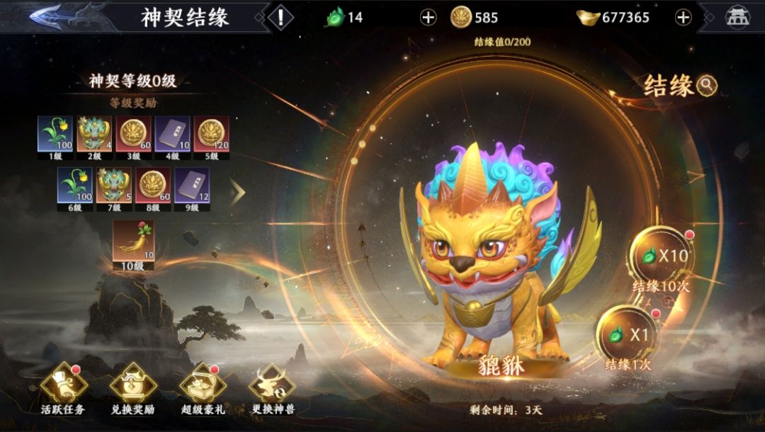 限时活动-神契结缘将于11月17日开启!您可愿与神兽-貔貅结下契约,助您征战沙场!