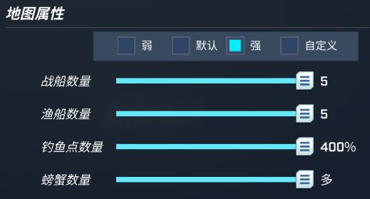 除了原本少年们熟悉的追逃参数外,少年们还可以自定义【战船数量】、【渔船数量】、【钓鱼数量】、甚至是【螃蟹数量】;