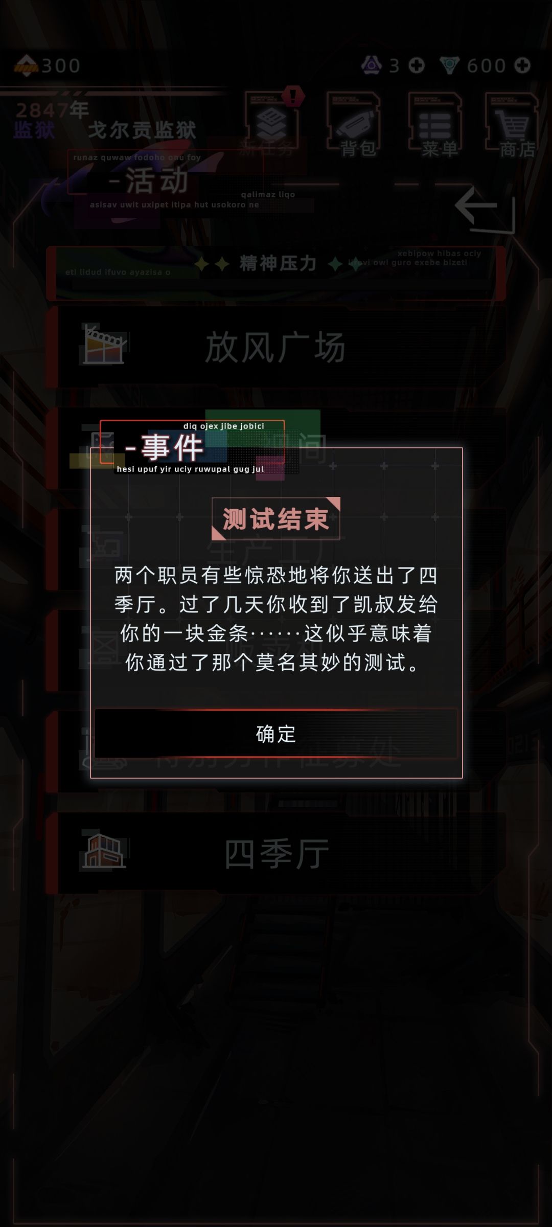 后面就是让干啥干啥(坏事儿选择)拿到金条默认你完成的很好(五年任务考察基本上每年触发一项任务)然后最后一项任务就是让你接受芯片,点愿意,然后就有人救你,故事结束。不用坐牢了。