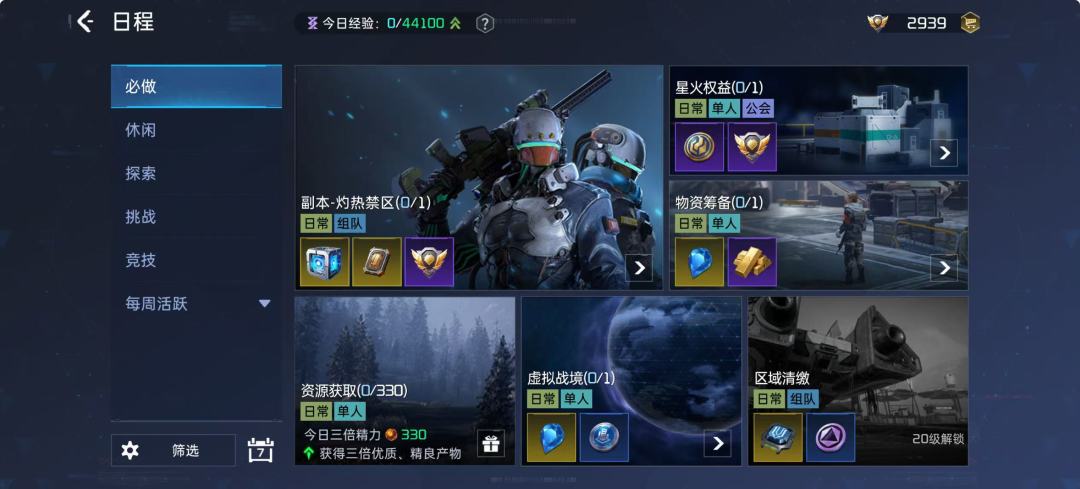 新服主打轻松日常,专为玩家打造更休闲的游戏体验!告别那些繁重的玩法——区域清剿、物资运输、精锐试炼统统被删掉,告别“强迫症式”的日常任务。再也不用为“每天必做”的日常任务焦头烂额,采集、窒息之域、援助委托、世界轶事、伙伴赠礼等任务,统统变成了“自由选做”。幸存者们可以根据自己的节奏来决定参与,轻松愉快地享受游戏,不再被每日任务的束缚压得喘不过气!