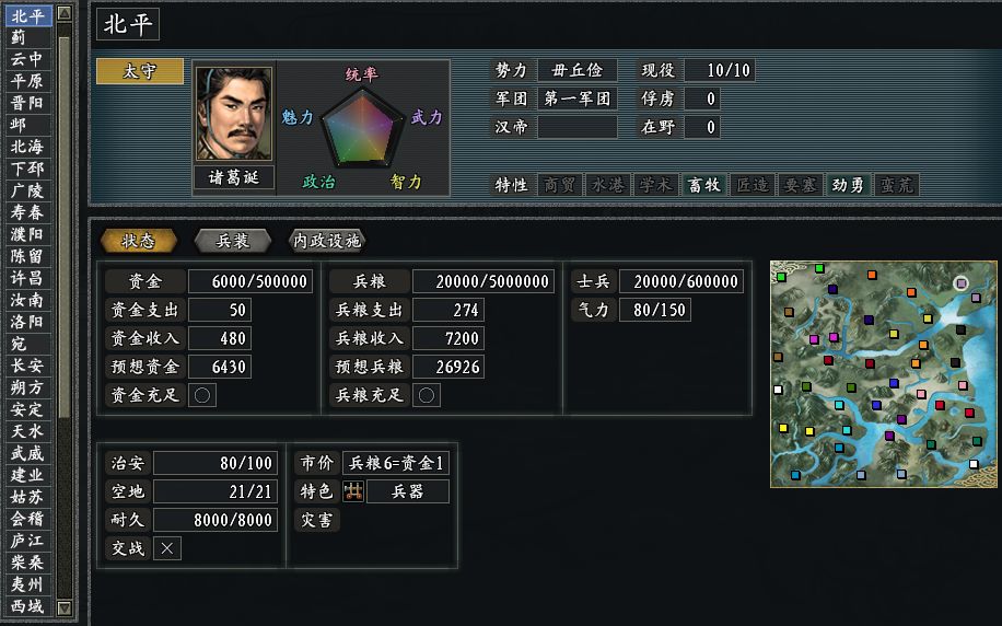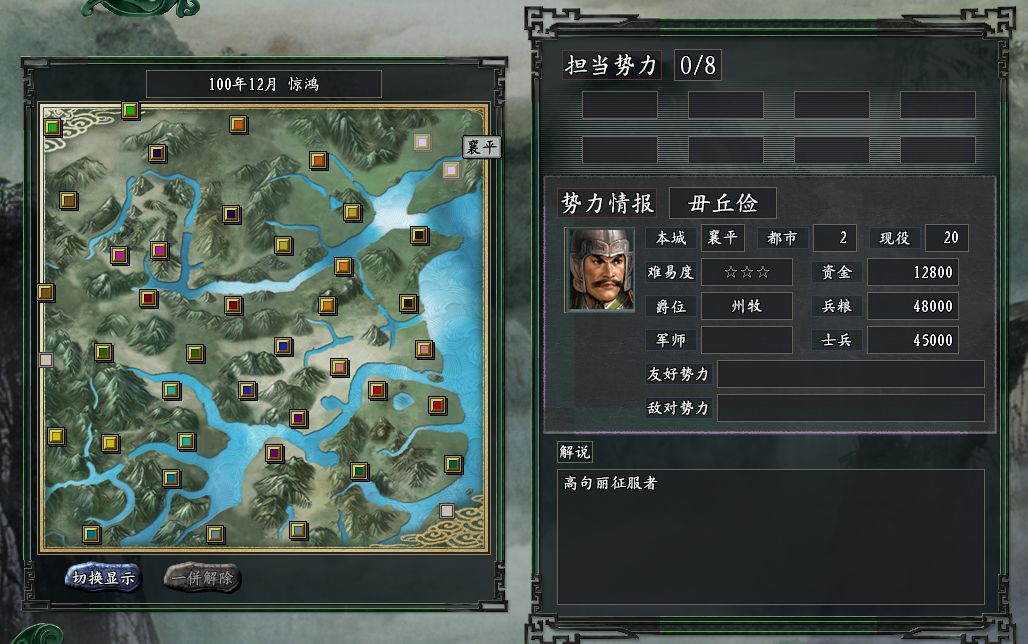 原本的辽东之主公孙度,被划分到了公孙瓒的麾下,这个我在之前一期的文章里有过交待,就是为了给毌丘俭腾出位置。北平和襄平皆归毌丘俭,再在进入东北双城的咽喉处新增了易京关卡,堪称三国志11惊鸿版最大的一处变化。只要毌丘俭他们能够守住易京,就能稳稳当当在辽东一带做土皇帝了。当然,他们的实力并不允许这么低调的混日子。