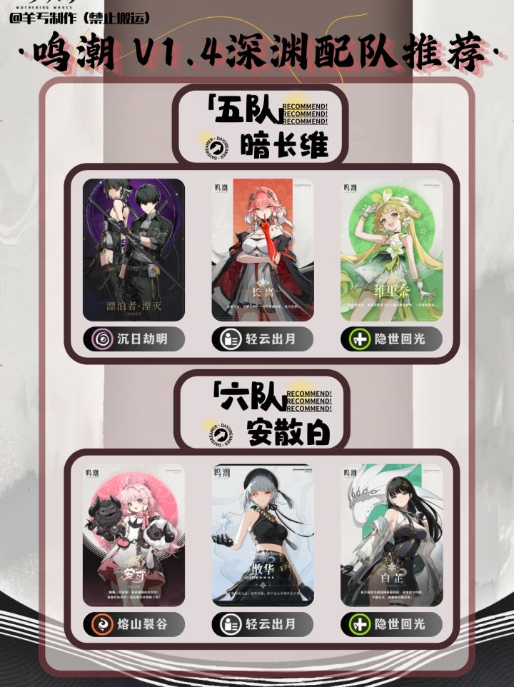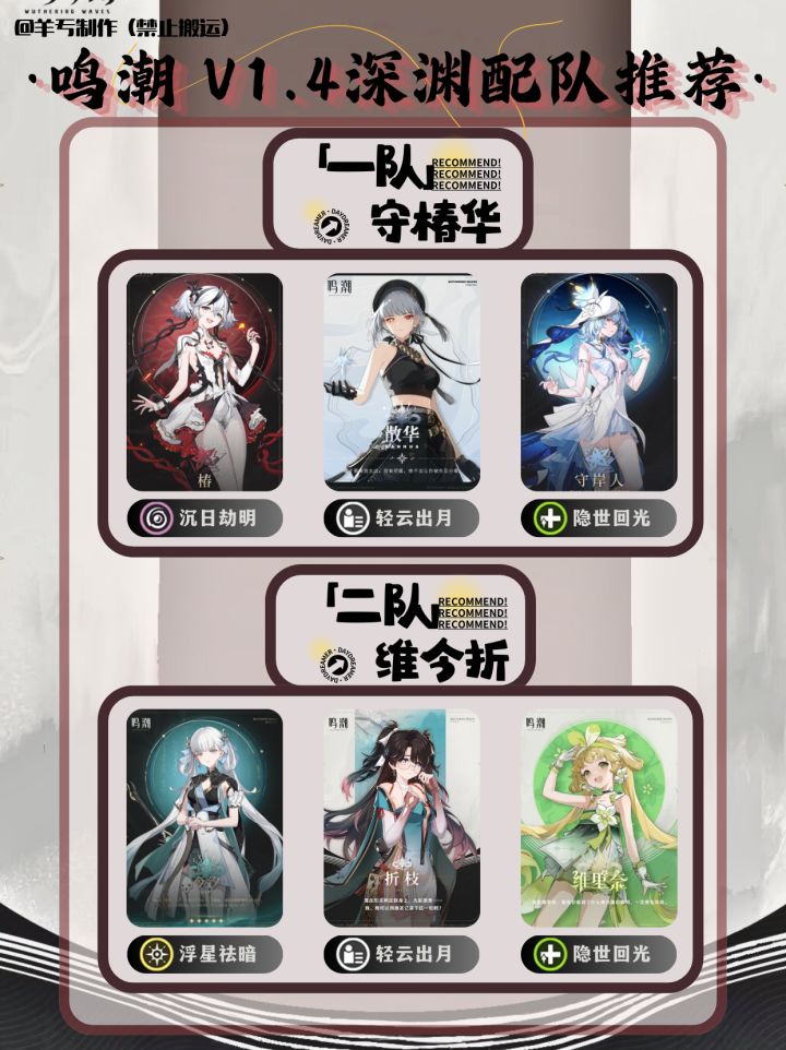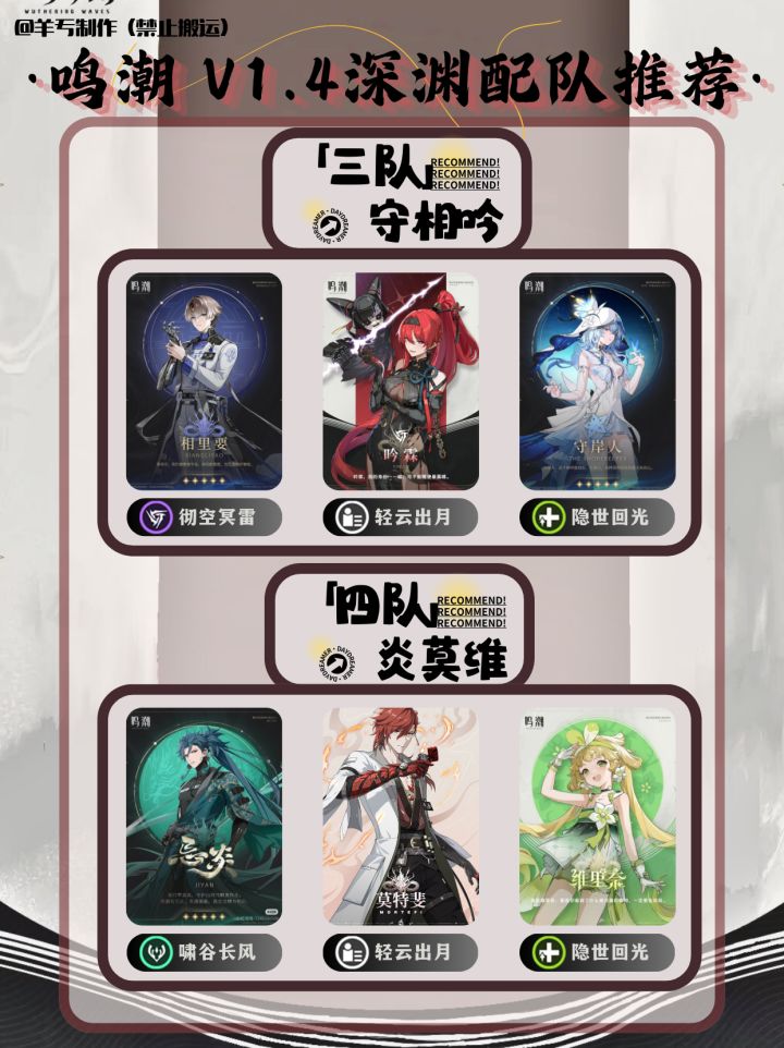 这次给大家带来的是鸣潮1.4版本深渊配队一览,新入坑的萌新和征战已久的老登们!仅供参考哦~