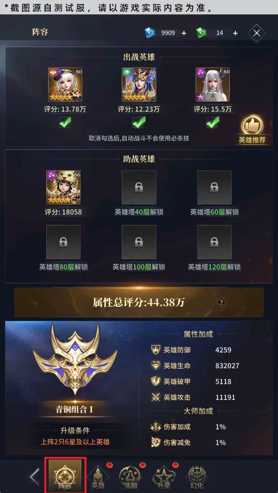 此外,通过挑战英雄塔,勇士们还可以解锁助战位,最多可部署6位助战英雄,获得额外属性加成哦!