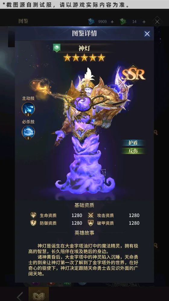 必杀技【祈愿之盾】:灯神发动神秘祈愿,化作神力之盾,忠诚守护主人。盾牌如天赐庇护,为天命勇士承受大量伤害,抵御魔潮的侵蚀。