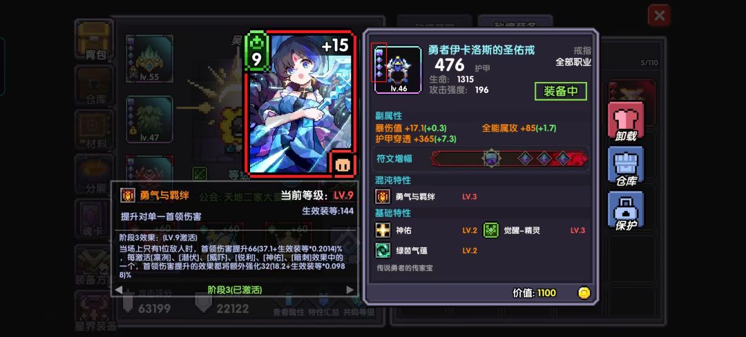 混沌防具按穿戴限制可以分为职业套和通用套两种,在混沌地牢的掉落总览可以查看(见图3),每种职业有两个专属的职业套,上方红色字体写有“推荐”的就是本职业的职业套,职业套仅有三个部位,不同职业套占据的部位也不同。通用套全职业共用两套:勇气套和贵族套,六个部位全都占有。混沌防具除了固定属性和副属性外,还有混沌特性和基础特性,单件防具的混沌特性为1-3级,同一套装下的防具具备同种混沌特性,可以累加混沌特性等级,最高九级。不同套装的混沌特性不同,其中勇气套是对王场景使用,贵族套是对群场景使用。混沌防具的选取原则是:查找本职业bd攻略推荐的职业套(三个部位),然后剩下的三个部位分别做一套勇气套和贵族套。基础特性最多三个词条,单个词条最高3级,基础特性分为通用特性、职业特性、固定特性和觉醒特性。其中通用特性是所有套装都可以出现或者铭刻的;职业特性为某职业专属;固定特性是勇气套和贵族套特有的;觉醒特性在本职业所有装备均可出现。要注意,有的基础特性是和防具部位相关的(如勇气套,见图4)。