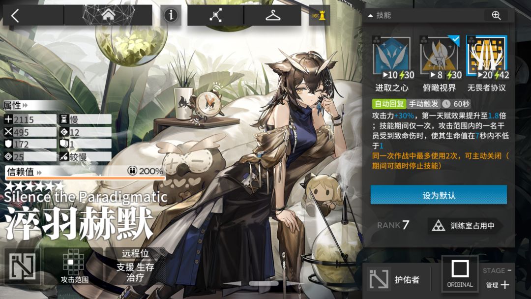 作为本体和异格双赠送的干员,本身其强度来说是一个强力对策,可以让干员拥有7秒锁血是真的强,但是也是真的日常用不上,只能说,期待合约可以拯救一下吧。、