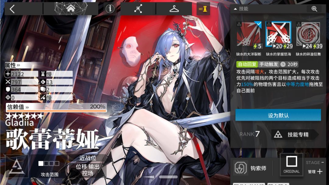 首先,就是第一位Y也是我认为目前最强的二周年活动赠送干员“歌雷蒂娅”