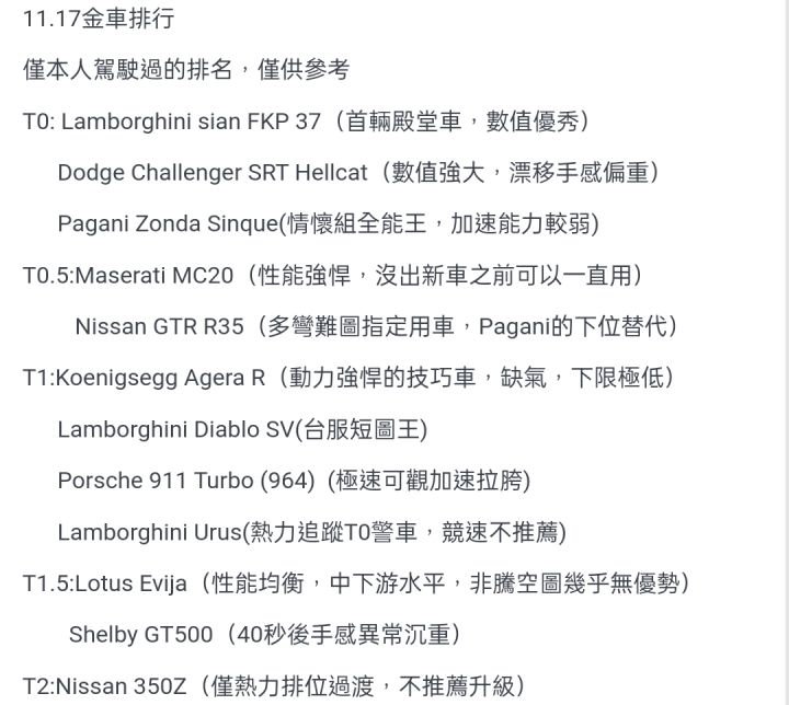 11.17台服金车排行