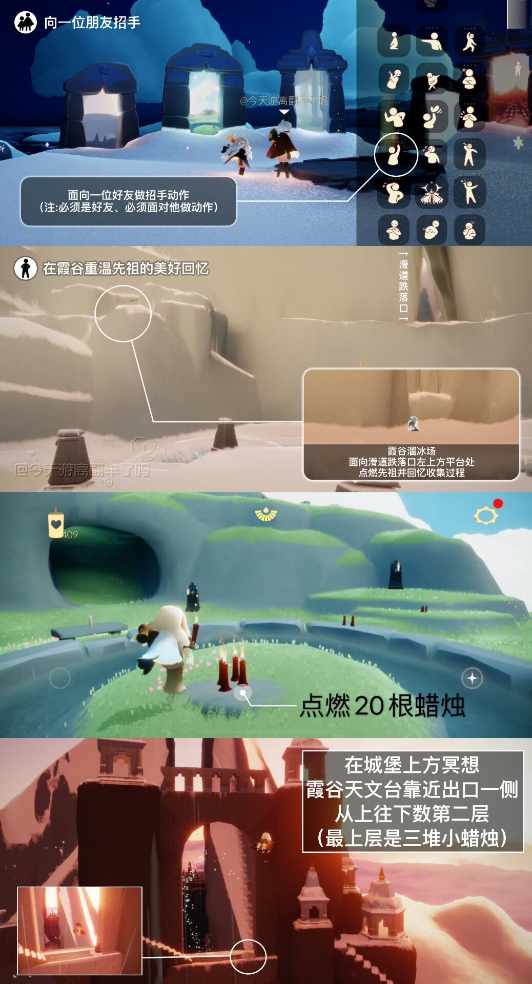 《光遇》游戏中每天的每日任务及大蜡烛的位置都不相同,玩家完成每日任务及收集大蜡烛都可以得到丰厚的兑换奖励,奖励可以用于兑换各种动作及道具,不过很多小伙伴不知道每日任务怎么做,又懒得自己去找大蜡烛的位置,我们汇总了每日任务的完成攻略以及蜡烛位置,一起来看看吧!