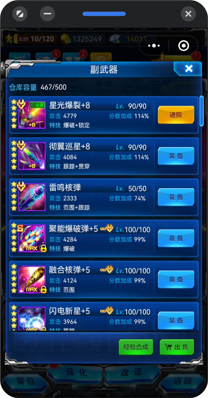 副武器穿甲弹/寻星/星光对比的话,打BOSS贴脸最快+5穿甲弹,其次+10以下的寻星,星光纯粹因为好看,而且无尽清杂快,现在的战力无尽170w之前都是暴走全程直接过的。