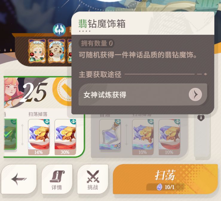 经常关注女神试炼和配饰装备界面的朋友们可能会在无意中看到女神试炼第26关掉落箱子的描述,以及装备界面当中一系列有着专属图标的白色配饰。在女神试炼的第四档难度下,关卡将会开始产出神话和神话+配饰,其中神话配饰仅仅在基础属性上比前面几个品阶的配饰要高,而神话+配饰则可以在凑齐一组三个后获得专属的套装效果。
