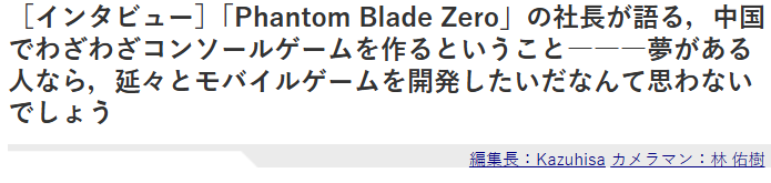 但即使这样,《黑神话:悟空》,还有你们的《影之刃零》也诞生了,且这两部作品都有很强的文化元素,像这样的事情有某种触发因素吗?某种东西就像一个触发器,促使中国开发者开始挑战主机游戏市场了吗?