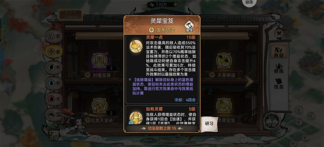 灵犀可以对敌方攻击最高的队友造成伤害,并吸收法宝蓄力,概率驱除增益,是针对高输出的选择。