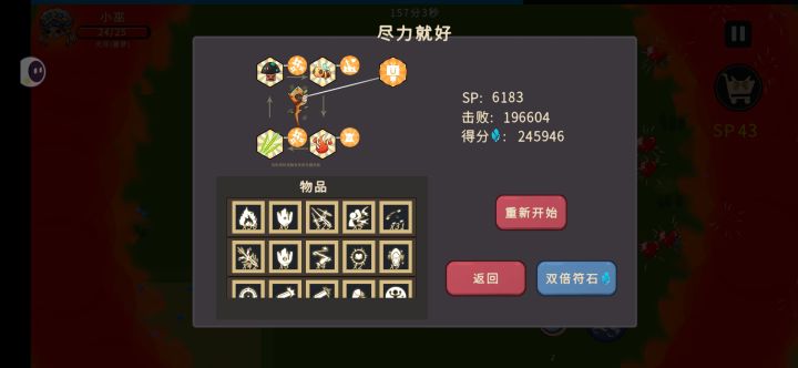 这个火圈刷到上下左右全覆盖了小怪出来就死,技能之所以这么配置就是怕卡屏,这样玩了150多分钟不卡,站撸双射线死不了最后放弃了,其实技能可以不用激光和蜜蜂的空着就行,前期击中位弄个大西瓜过度一下升满后换经验拾取器就行了,火球🔥插件用冰冻或者诅咒,蘑菇🍄用诅咒或者回血比较随意不重要
