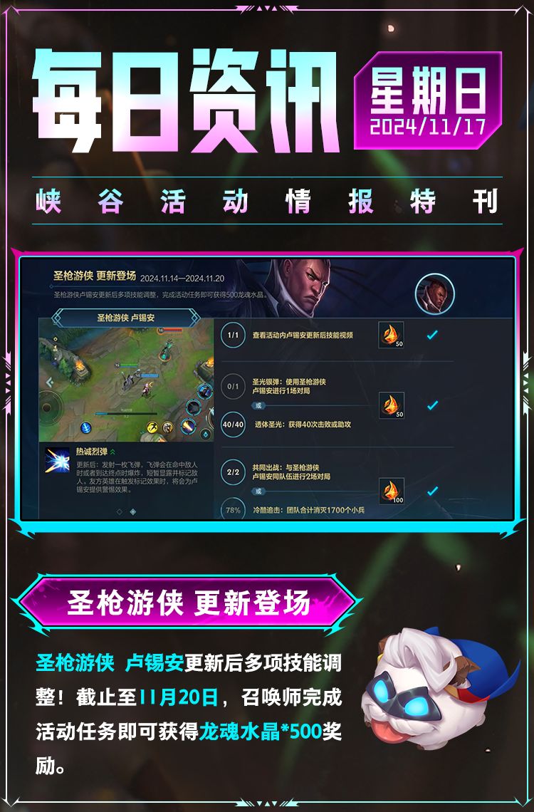 全新终极对决模式限时开启,终极装备带来畅爽战斗体验!截止至11月28日,召唤师完成3场终极对决即可领取龙魂水晶*200好礼~