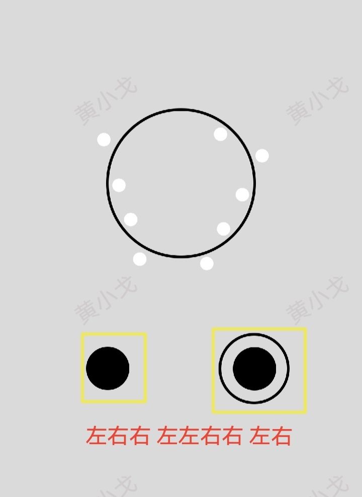 ✅根据白圆的位置,按顺序点击两个按钮,使白圆全变黑圆;点击下一关按钮