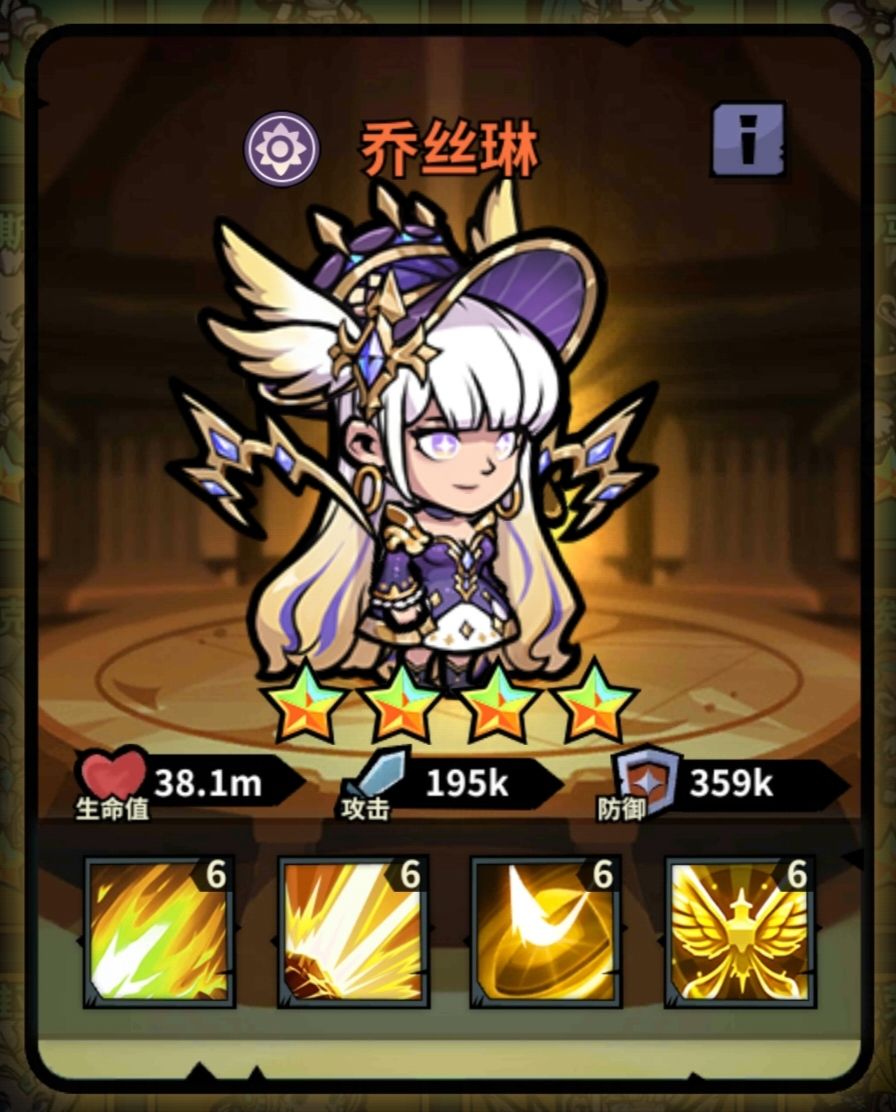 乔丝琳是光属性输出战士,是一个活动英雄。由于本人财力有限氪不起,达到彩色4星的价格都是道听途说来的,应该在5000到10000之间。