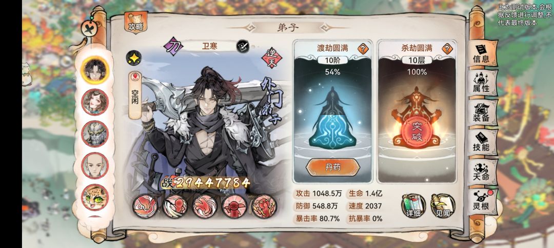 命运轮转:这是他的被动,比一般刀角色的被动都要强。每回合结束之后,积攒一层刀意,三层刀意,额外释放一次攻击,此次攻击以30%的伤害降低敌方生命上限,每个技能都能降低敌方生命上限,能够压制敌方生存能力,这个机制很好。或许你觉得他的机制还不够完美,接着往下看,这只是压制和输出能力,他还有很强的生存能力。