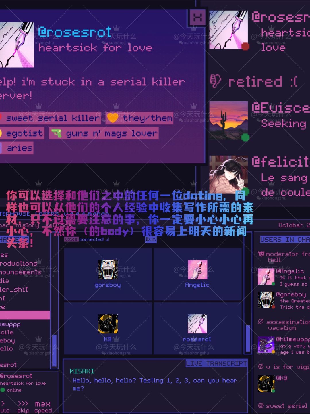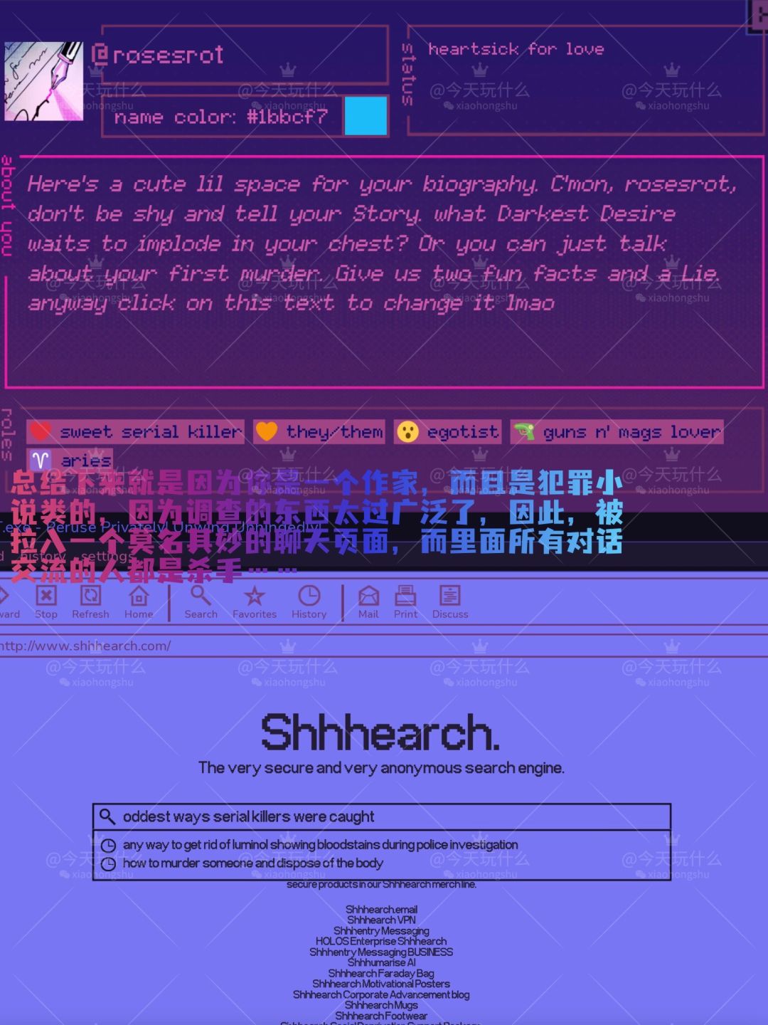 早就告诉你了,人嘛,不要对事事都充满好奇心!!在网上问了太多与谋S有关的问题(今日cos作家身份)后,你收到了一个邀请✉️进入一个……连环杀手聊天室?!