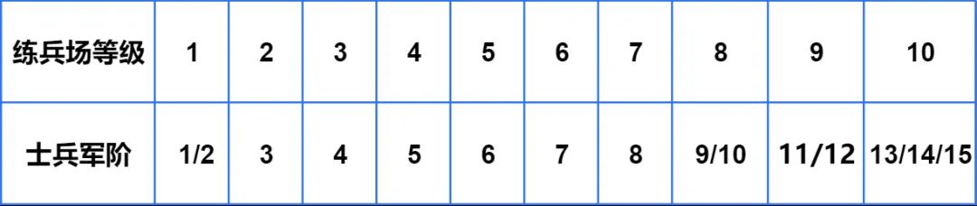 需要注意的是,士兵军阶上限与练兵场息息相关,只有在提升练兵场建筑等级后,才可为士兵提升军阶。