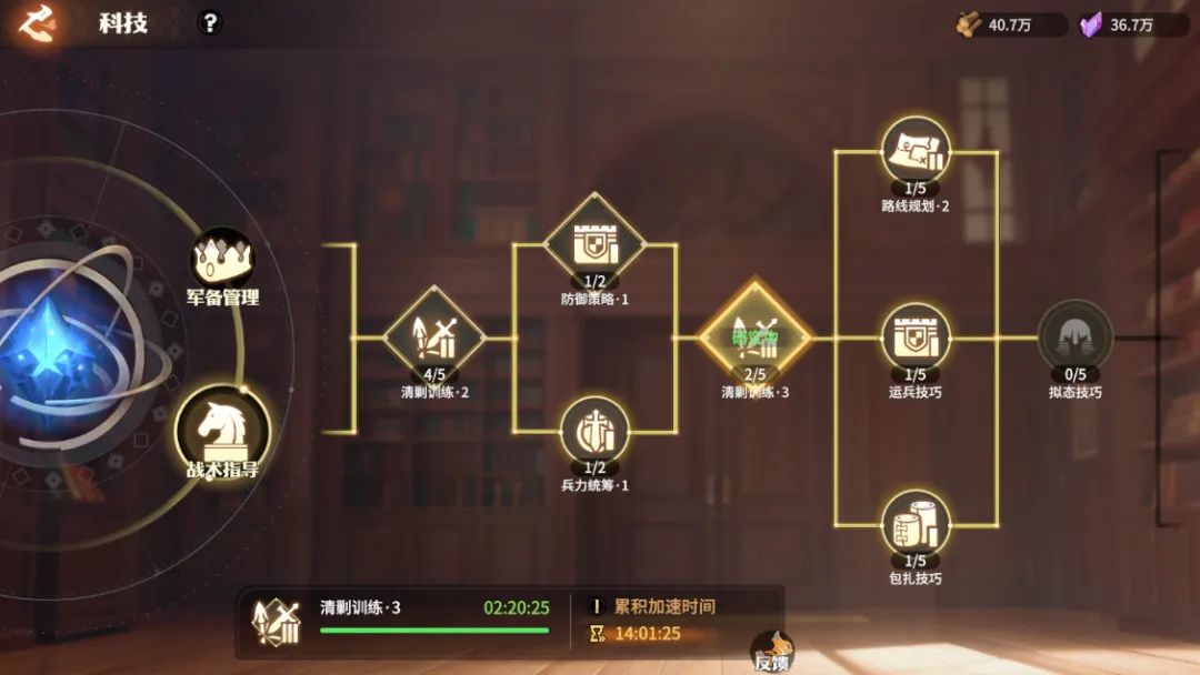以强化大地图作战能力为主的科技,例如提升对黑翼军团的伤害、军团行军速度、缩短埋伏时间等。