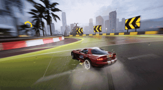 雨中城的地形构造相对比较简单,由大量小角度弯道和直道组成,组合弯的分布较为均衡,能够很好地发挥道奇 Viper SRT-10的扩容氮气、后驱车辆特性优势,氮气补偿特性也能让你快人一步领跑全场!