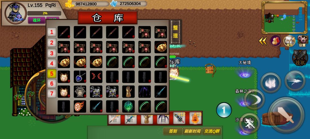 如果你把能做的彩蛋和NPC技能都完成,你应该能挂万恶之源了。我是99%鞭尸。买时间卷轴慢慢挂几天,抽奖券够100张就去抽奖,换+15的装备。一身+15了你就能去森林4浪了。