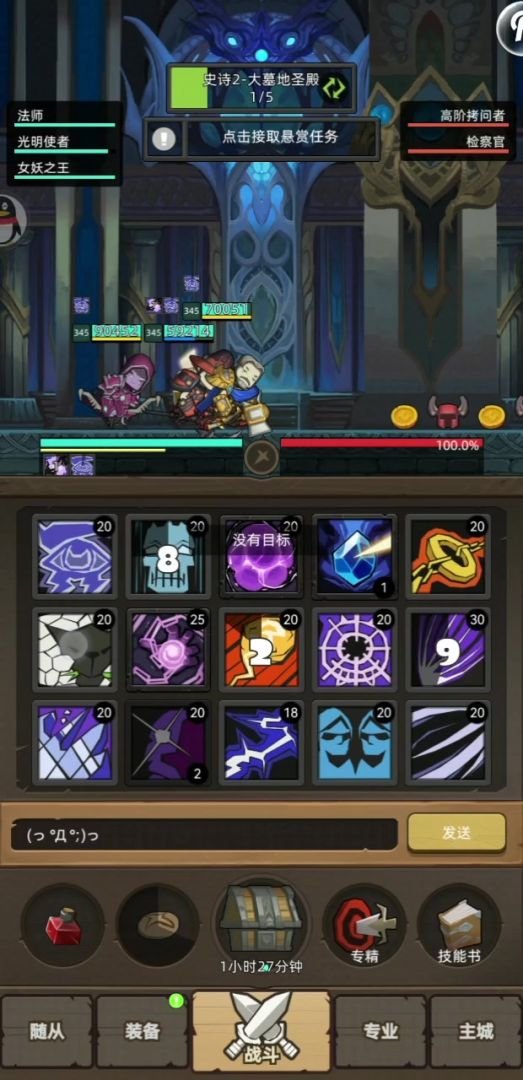 这里选择了单体怪中最具难度+2cd的占星者进行演示,并且随从没有控制技能,可以看到门槛分进本也只会吃到一次伤害 ,其余时间打断足够回转,并且主力前排光明使者根本不会死亡,这意味着单体怪可以随意拿捏,完美实现拖延爆发技能cd的作用。