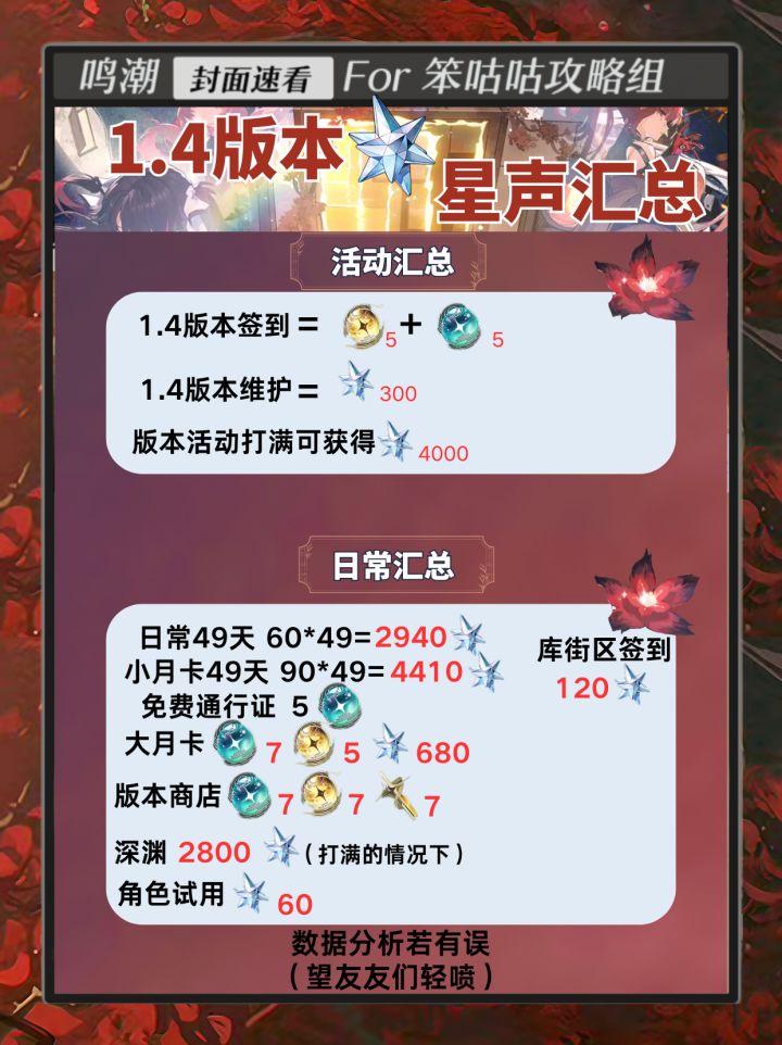 1.4版本来啦,帮大家总结了一下整个1.4版本可获取的星声和各种活动福利!