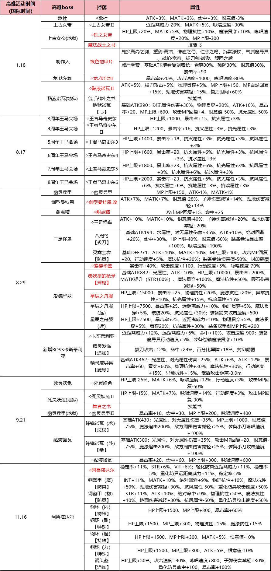 一、高难活动掉落一览