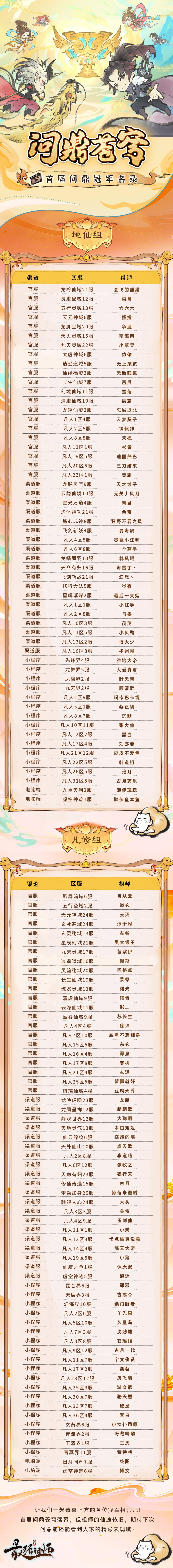 ※由于部分冠军祖师在赛后进行过改名操作,所以上述名单会存在与游戏内展示的冠军信息不一致的情况。