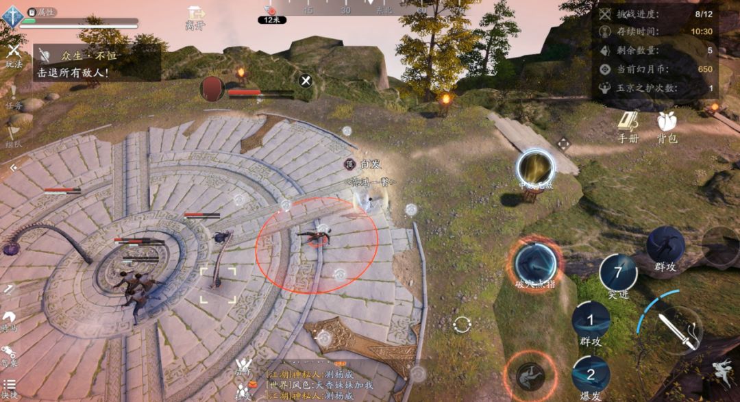 新增精英怪5隐匿小怪在初始阶段是无法被锁定的,只有等它靠近少侠释放了技能,才可以被锁定攻击。隐匿小怪靠近少侠时会出现红色范围提示,少侠一定要及时翻滚出红圈,避免吃到伤害。