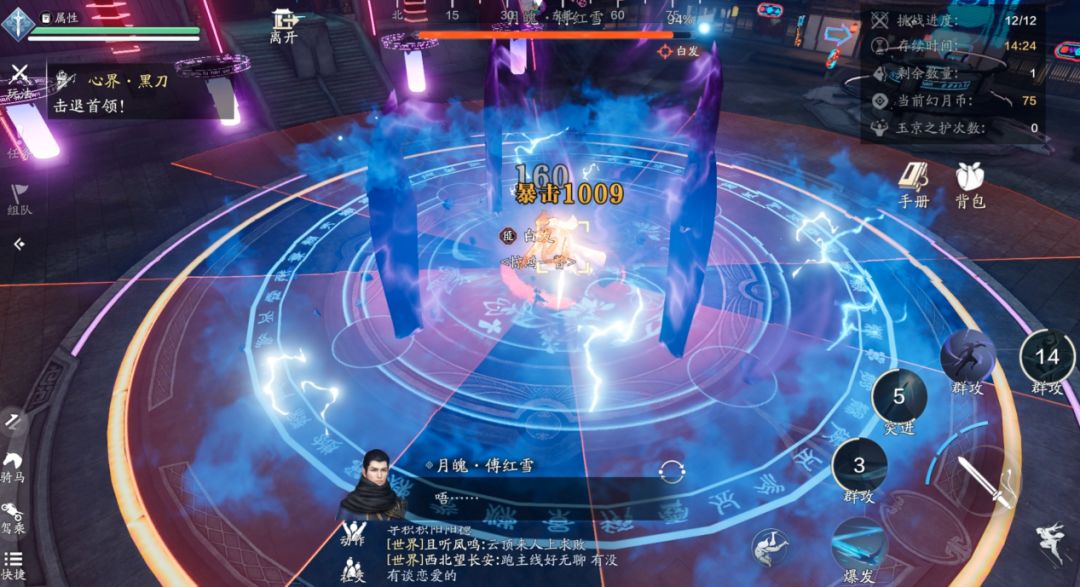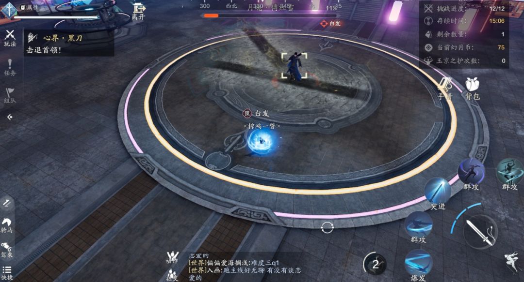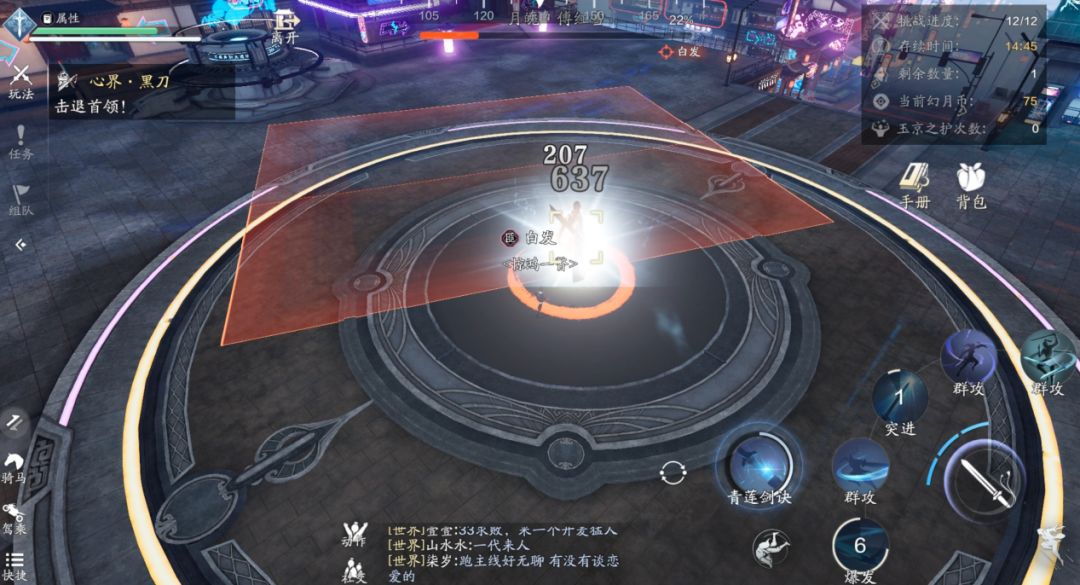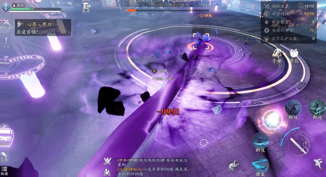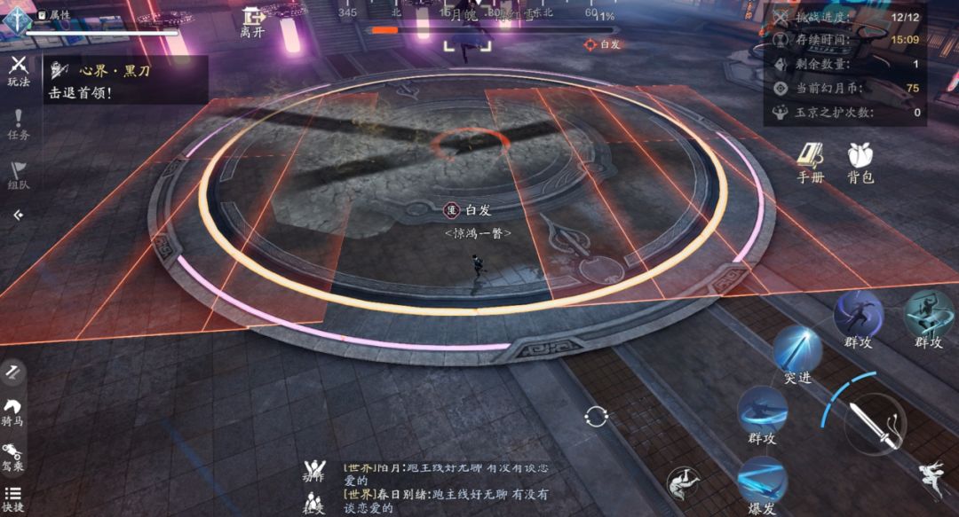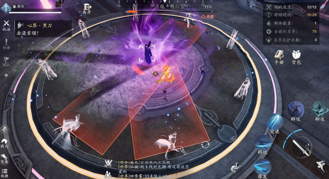 黑刀问情第二阶段除此之外,黑刀问情的二阶段会出现多个矩形范围技能,少侠除了注意地上污染区的同时,还需要找到安全区域进行躲避,该技能一共释放3次。