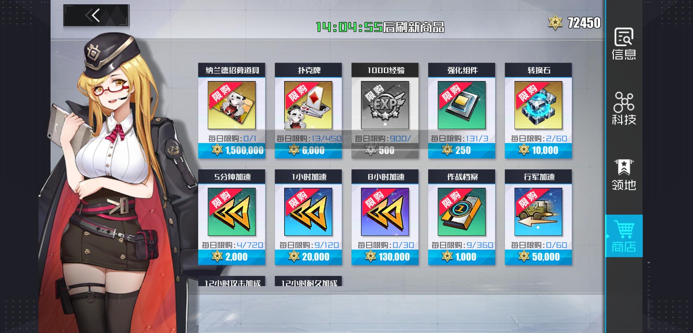 军团商店一天刷新两次,经验书和强化组件必买,所以尽量,去贡献你的资源,获得更多的军团币。同时于人于己都有好处。