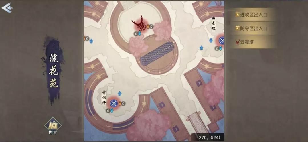 每个地图都有一个领地战传送点,通过传送点可以进入到当前场景的领地争夺地图中。每个地图都有不同的防守,比如守卫队长、城门、防御塔之类。