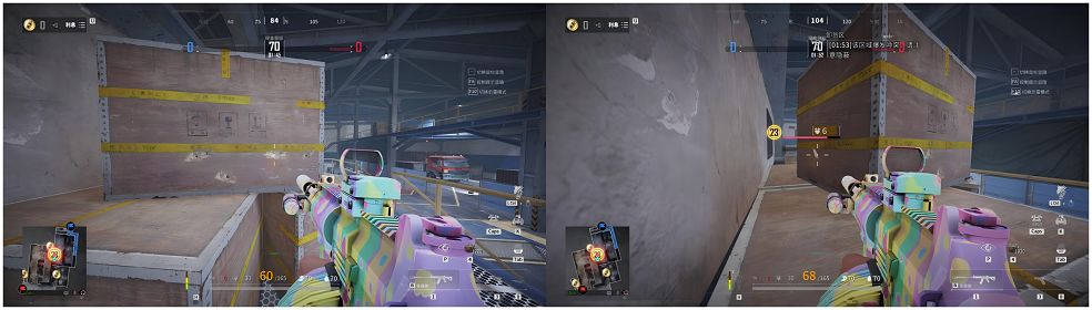 而工厂里随处可见大大小小的的箱子也有许多可以被穿透哦,例如下面这几个位置的箱子,萤火虫们可以记住后在实战中多多利用!