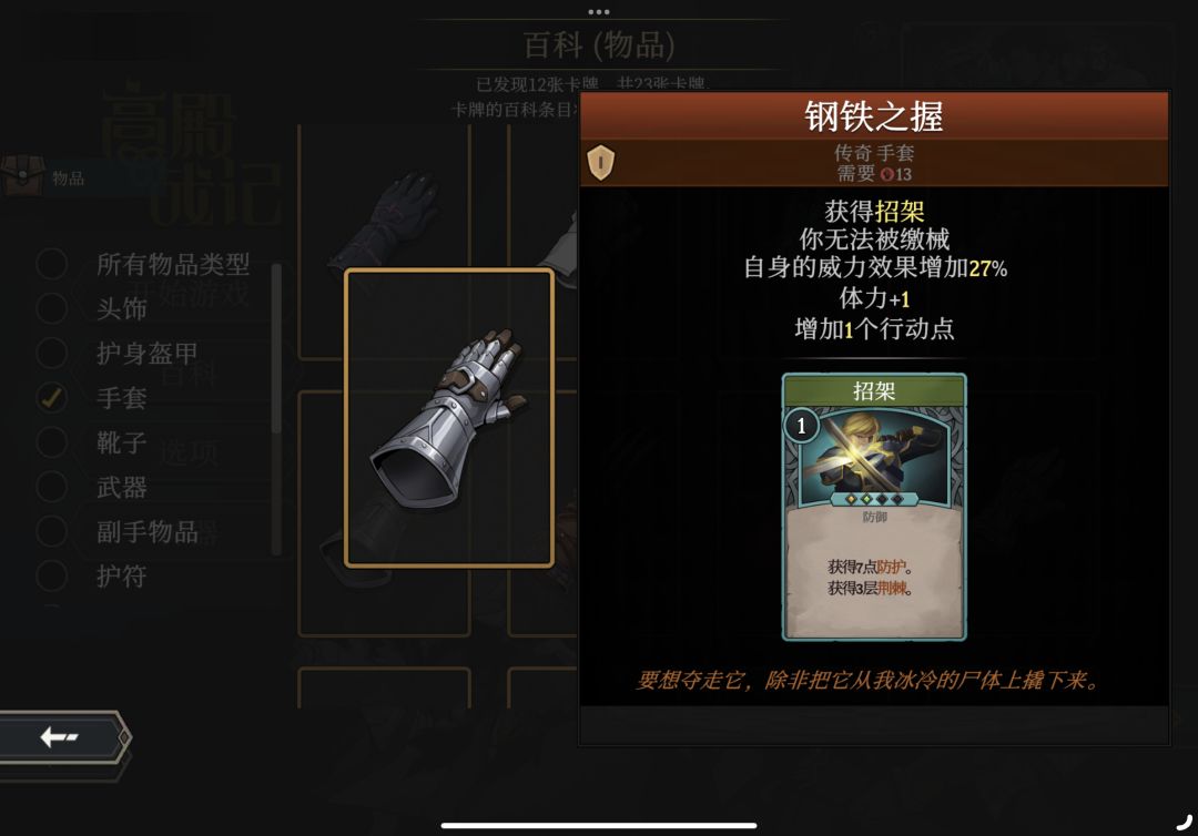 手套(传奇手套都加行动力),黄昏,钢铁(免疫缴械,提高威力)