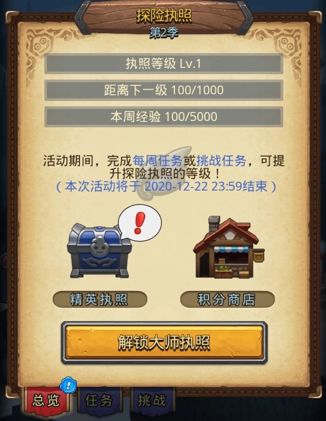 冒险者依照要求完成每周、挑战任务