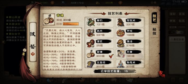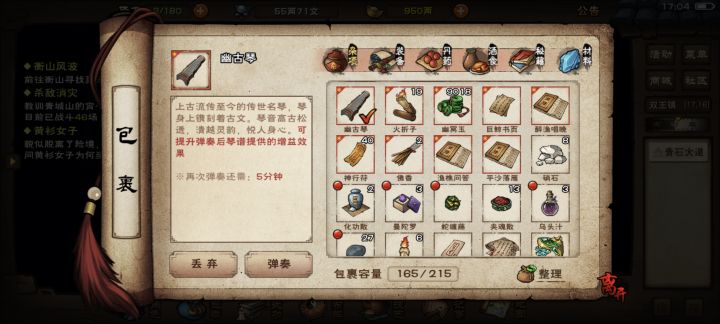 加成方面:递交师澄的材料之后,可以上涨很多琴韵技艺的经验,我这边是从296级直接拉到了满级300,我估计经验应该可以拉5到10级,没有实验过,各位可以记录记录自己获得这个幽古琴获得的琴韵经验![[表情_捂脸哭]](https://img-tc.tapimg.com/market/images/83aa452eea88b5c64df710bca367b7e9.png)