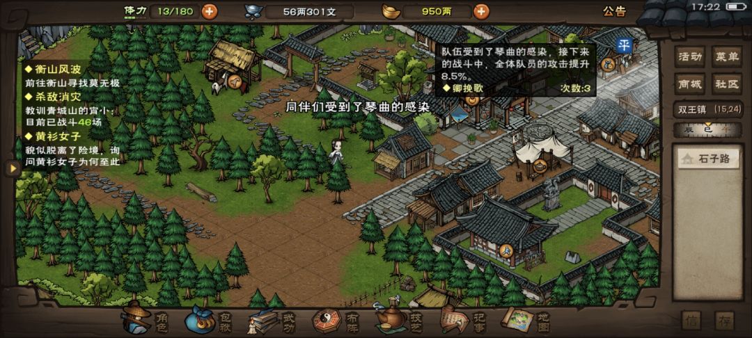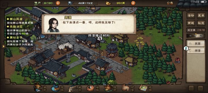 资源方面:金丝楠木确实有点难搞,一个游历,还有一个几率很小的峨眉山松木资源点都可以搞到金丝楠木,不过我还是建议每天游历次数拉满,楠木的获取基本上就靠游历获得了,反正我这边真的就是纯靠游历得的树苗攒出来的,攒了大概一周多点吧