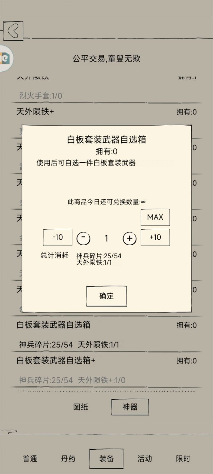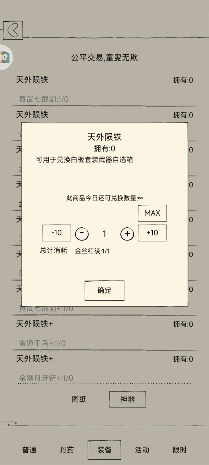 3.去偶货商兑换自选天外陨铁 并用25神器碎片和天外陨铁兑换白板自选神器。