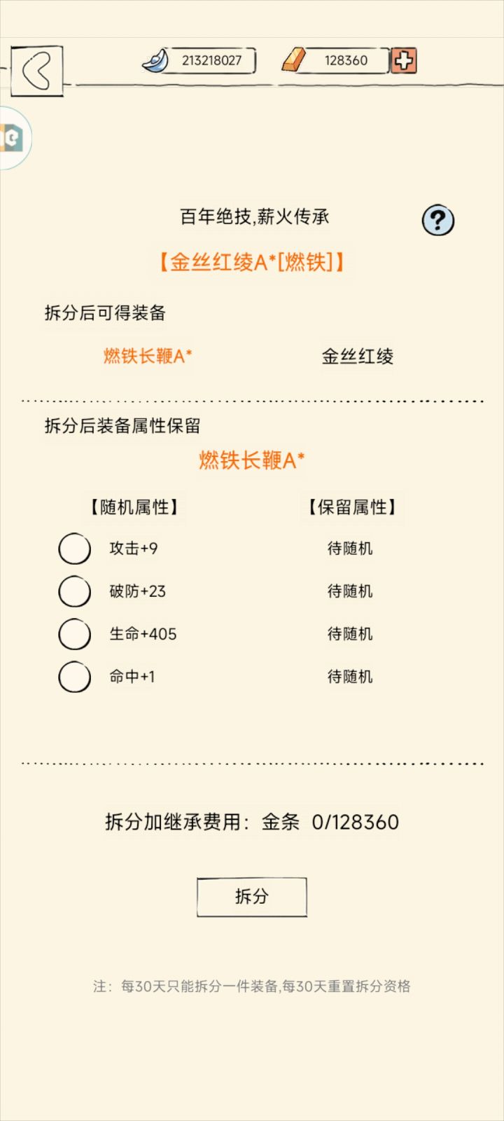 3.然后去顺天府铁匠拆分得到白板神器(0花费 期间30天可免费拆分一次)