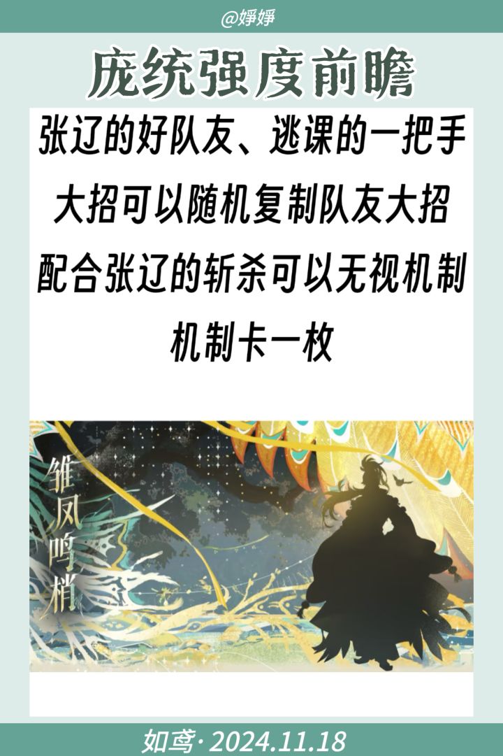 常用于和张辽组队,赌庞统辅助张辽的大招【无视机制秒杀对面两人】