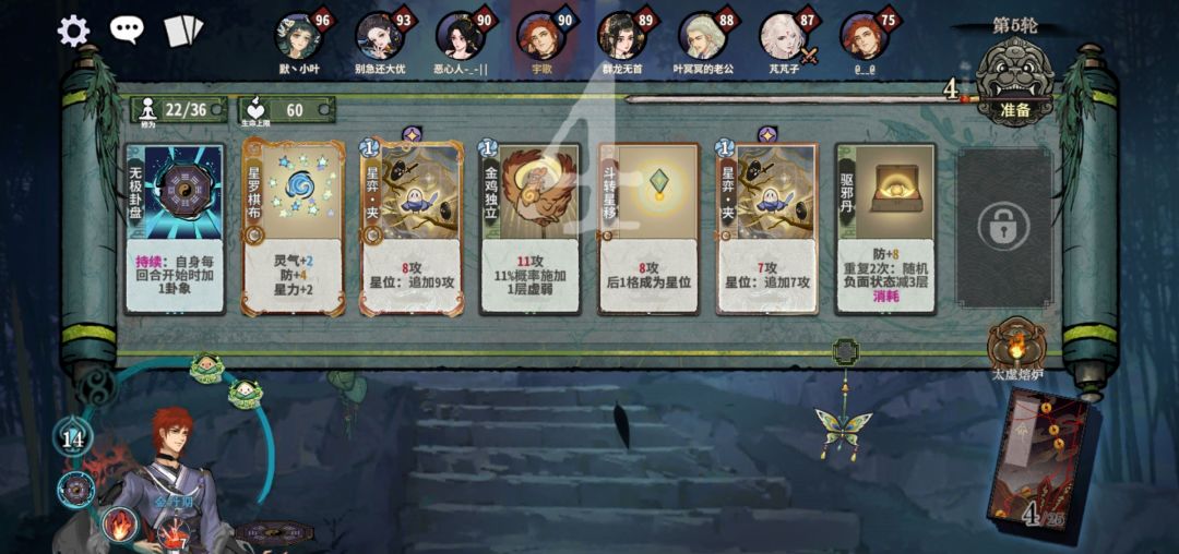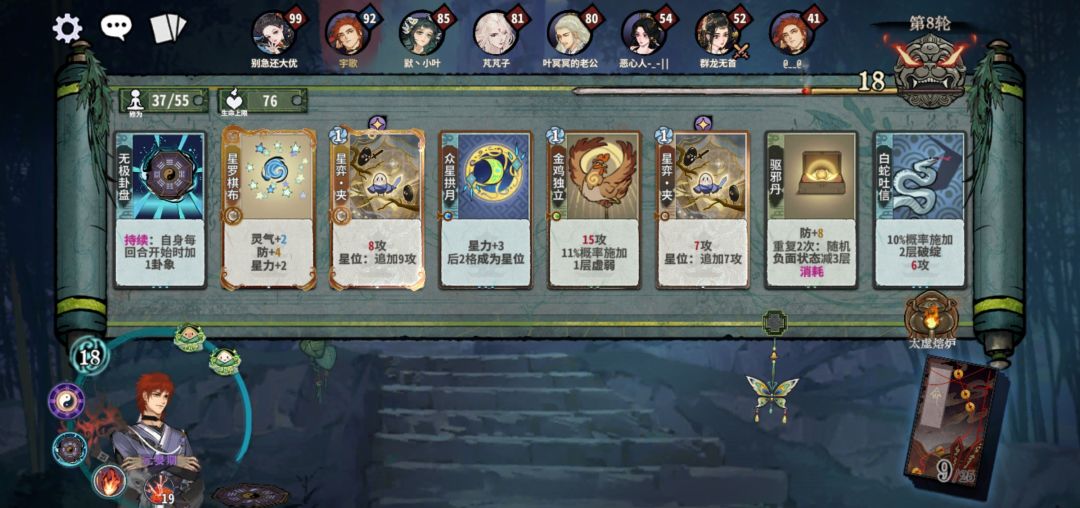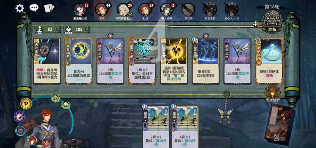 第2轮,如果是熔炉,那快速换牌找星罗,如果不是,不用强求。副职牌主留培元丹,以前喜欢用地灵丹,打多了发现培元丹才是最神奇的。依旧三套公式: