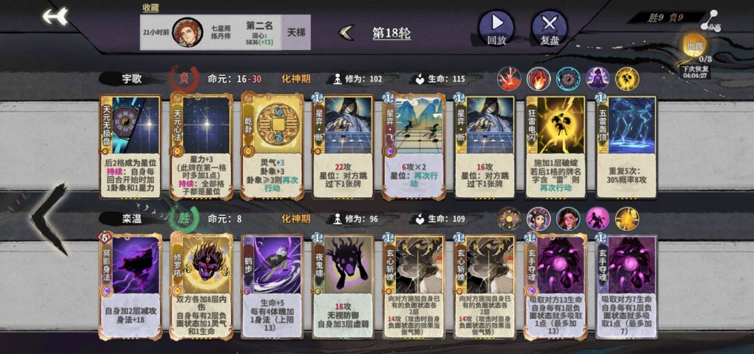 如果前期运营可以,修为跟上,能化神就化神。如果修为不够,上化神要缺2张牌,估算下双方牌面质量,比对面强可以考虑忍一轮,不强就直接化神。