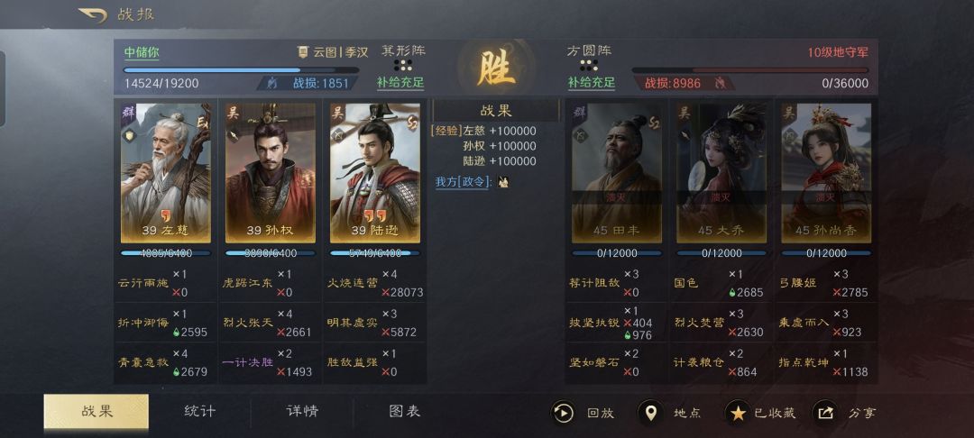 特别鸣谢游戏ID名为“中储你”的玩家朋友,给本文提供了宝贵的创作素材。他利用麾下的左慈、孙权和陆逊摆出箕形阵,别人都还在卡7级、8级的地,他直接一口气把兵力多达36000的10级野地踏平了。左陆军到底如何才能全面解锁威力,我把具体的细节都整理在了下文段落。