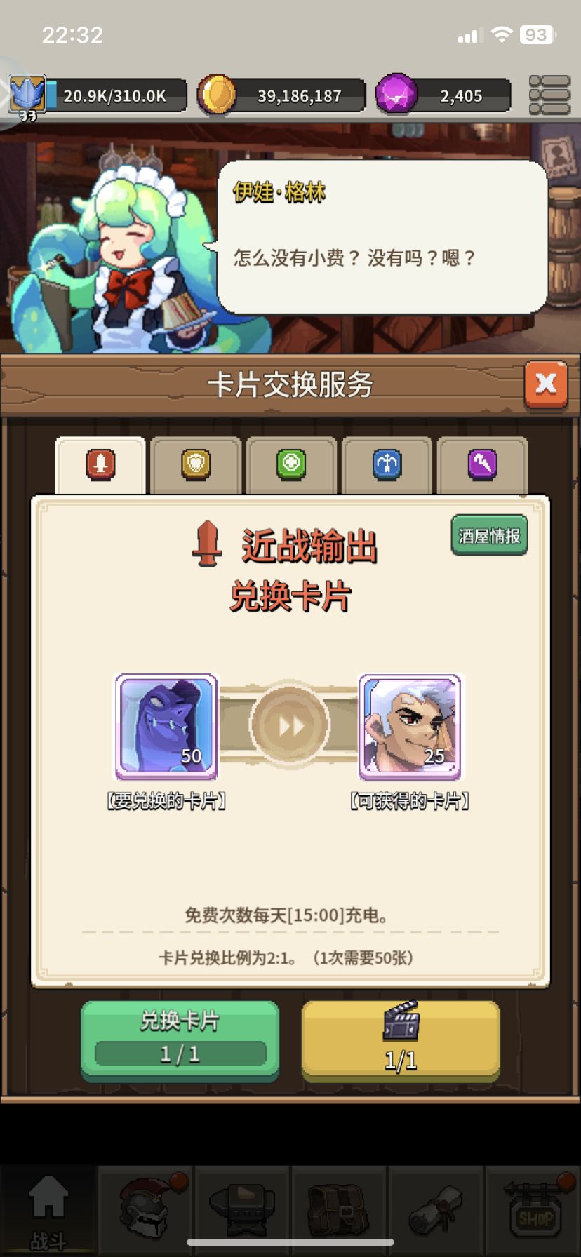 浅谈一下游戏资源获取办法,游戏其实玩的就是一个资源,首先我们的角色选定以后,角色碎片获取途径:每日任务公司任务合计600个万能碎片,商店碎片兑换,免费兑换150个,酒馆50个,也就是说一天白嫖的话最多800个碎片。
