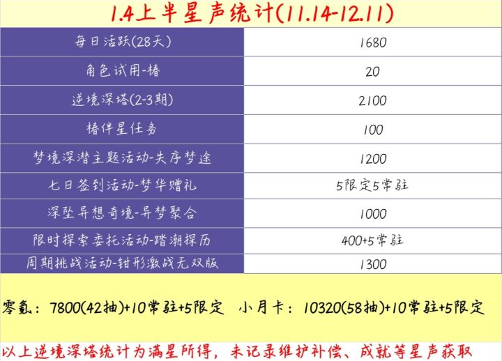 hello!相信大家都已经抽到了【椿】,没有抽到了的或者想抽专武没有星声的漂泊者们有福了,这里是香草冰冰球为各位漂泊者们带来的V1.4上半版本获取星声统计,拿到这些星声后相信大家就都能拥有美人了!